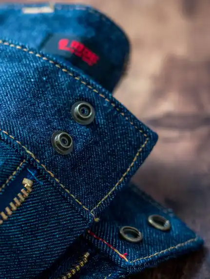 岡山産デニム(12oz、2%スパンデックス)を、かつてデニムで栄えた秋田県、宮城県で職人が1本ずつ縫製。純国産。 |