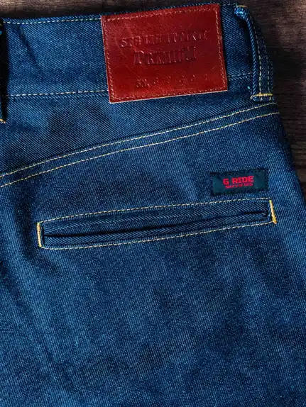 G RIDEは前オーナーのアドバイスを受けつつ機能改良、生地選定、紡績工場交渉など全ての工程を見直しました。 先ずはSFGの名を冠した「SFG Light MX II Premium」を生産しSFGのDNAを残しつつ、全てのモーターサイクリストにこのデニムの感動的ですらある快適さを体感して頂きたいと考えています。