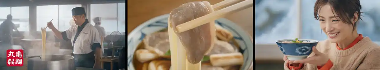 「打ち立てに、冬のうまさが、しみわたる。」というナレーションが、丸亀製麺に冬が到来したことを告げます。 |