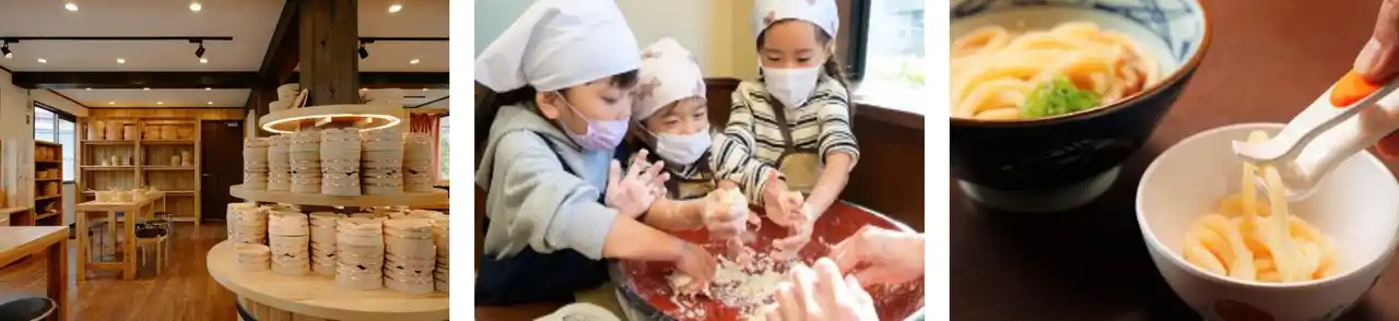 また、こども達に食の楽しさや尊さを伝える「食育活動」にも積極的に取り組んでいます。「こどもうどん教室」では、うどんを粉と塩と水を手で混ぜるところから体験でき、キッチンカーを用いての出張教室も日本中で実施をしています。そして、環境面ではプラスチック使用量の削減にも取り組んでいます。店内では繰り返し使用可能な食器の活用や、テイクアウト商品のカトラリーやビニール袋へのバイオプラスチック配合など、石油由来素材の使用削減を進めています。 |