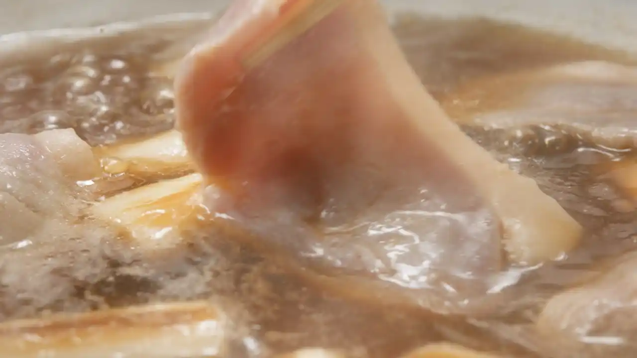 合鴨肉は打ち立てのうどんと一緒にお召し上がりいただくために最適な厚みのロース肉を使用。ご注文をいただいてからだしと一緒に火入れし、手早く仕上げることで、しっとりやわらかな食感をお楽しみいただけます。 |