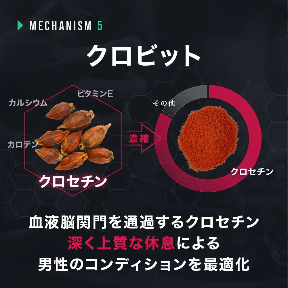 | そこで弊社では、男性のエイジングケアに適した素材や休息の質に着目した素材を独自に組み合わせ、オールインワンの男性向けコンディショニングサプリを開発いたしました。 | |||