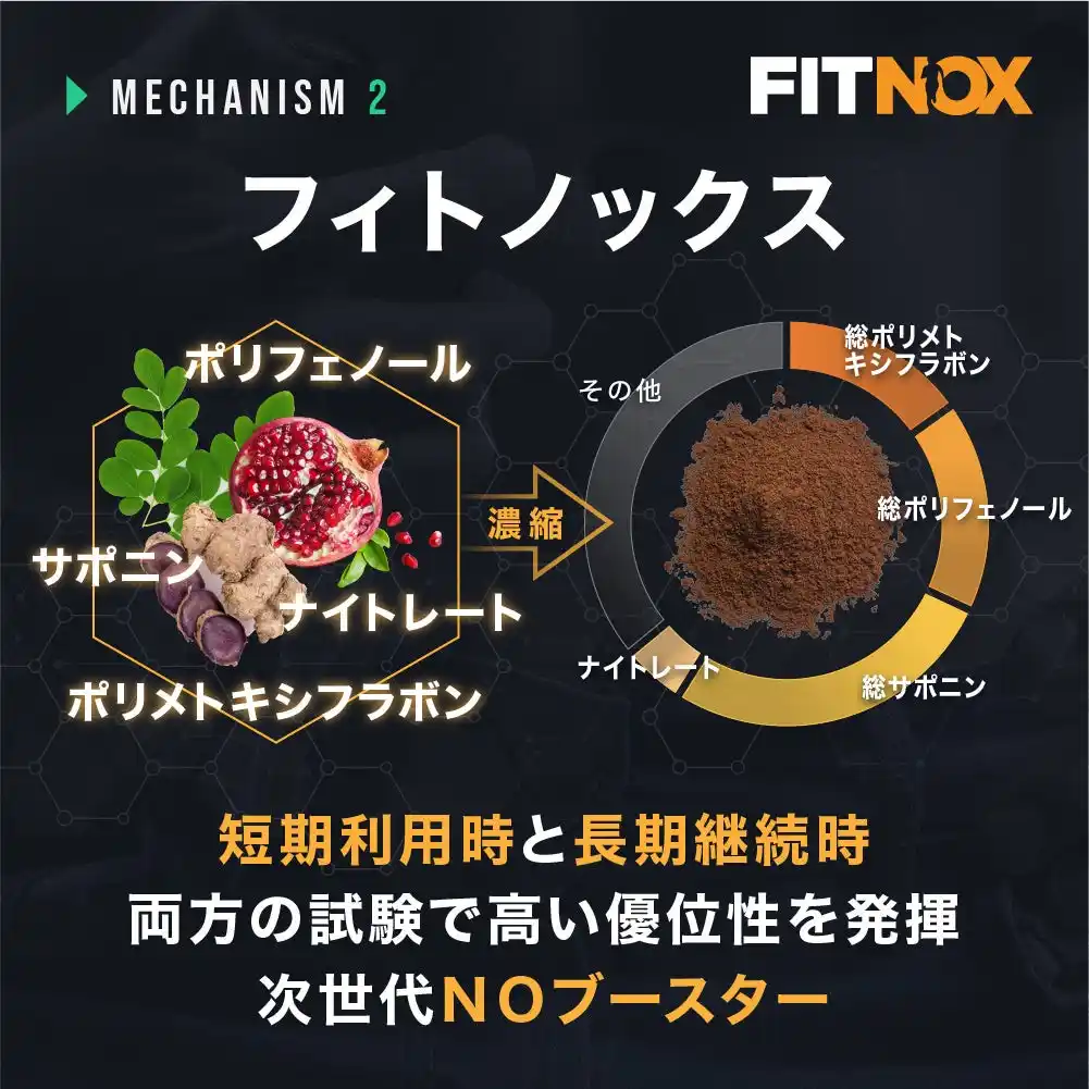 | フィトノックスは3種の植物に含まれる有用なフィトケミカルを、人体が取り込むのに適した形に加工する「PNSテクノロジー」で加工した先端NO系素材です。 | |||
