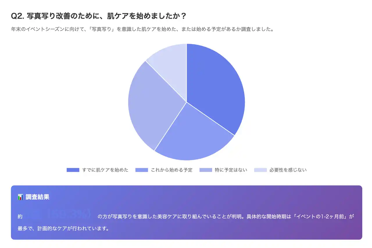 | 年末のイベントシーズンに向けて、「写真写り」を意識した肌ケアを始めた、または始める予定があるか調査しました。 | |||||||||||||||||||||