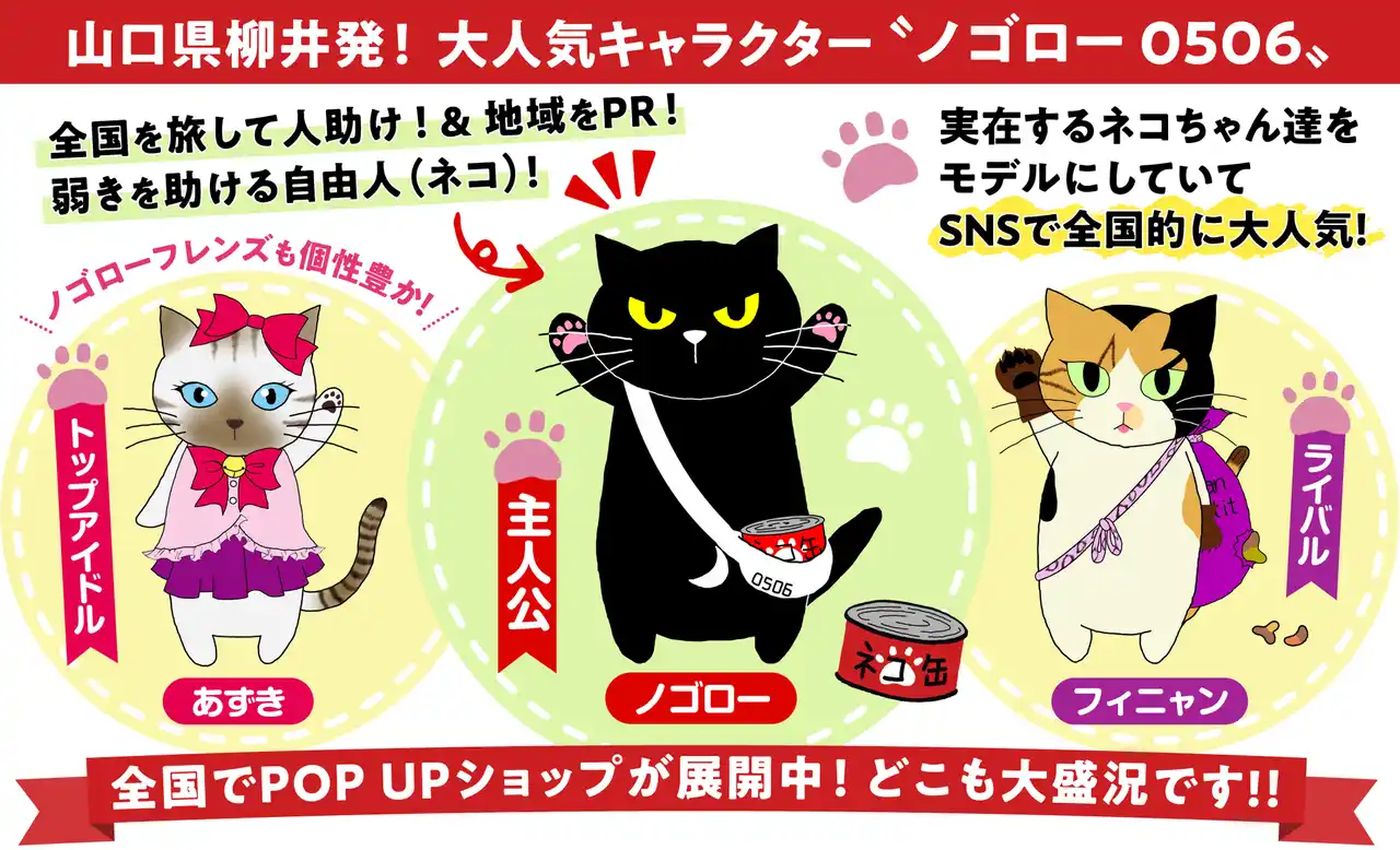 八木兵株式会社が運営するEC仕入れモール「caumeri(カウメリ)」にて、大人気のご当地猫キャラクター「NOGOROU0506(ノゴロー0506)」の商品をBtoB ECモールで初出展。 |