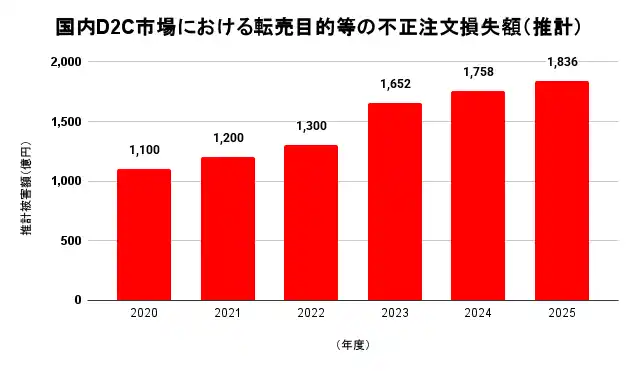 ■国内ECの不正注文は年々増加。D2C市場の損失額は2025年に前年比78億円増の1,836億円へ