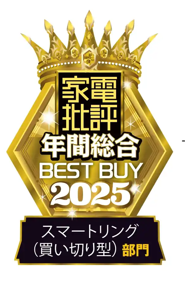 同製品は、家電テスト専門誌『家電批評』2025年12月号でスマートリング(買い切り型)部門の「年間総合ベストバイ2025」を受賞しています。消費者目線で徹底検証する編集部が「本当におすすめできる」と認めた製品に付与される認証マークの取得に至りました。 |