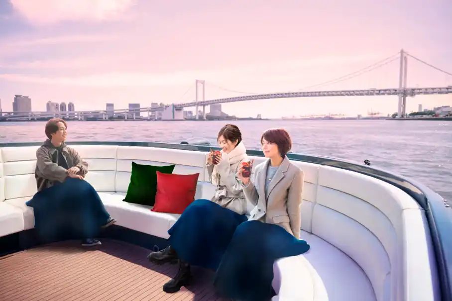 東京港の絶景を眺めながら、クリスマスジャズに酔いしれる約60分の周遊クルーズ。上質な空間で、ホットドリンクやスナックとともに特別なひとときをお楽しみください。クライマックスは、レインボーブリッジの真下をくぐる圧巻の景色。心に残るクリスマスナイトを、ぜひ体験してください。 |
