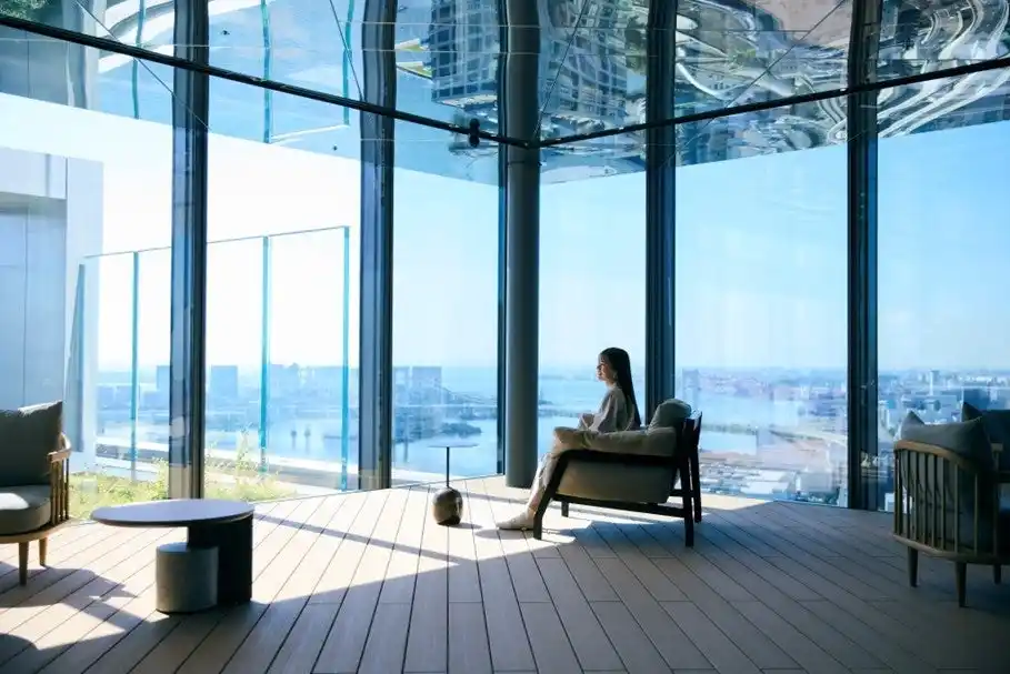 地上約 140m から東京ベイエリアを一望する「BLUE SKY LOUNGE」普段はオフィスユーザーのみが利用できる特別な空間が、イベント期間中に限り展望台としてオープンします。さらに、WOWによるアート作品「Flowing Presence」がクリスマス仕様に演出され、幻想的なひとときを演出。空と海をイメージしたオリジナルドリンクを片手に、ここでしか味わえない特別な体験をお楽しみください。 |