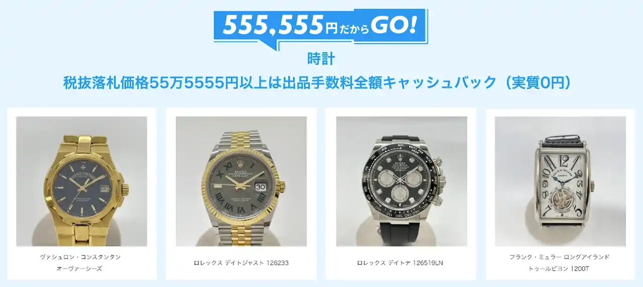 ・時計:税抜落札価格55万5555円以上は出品手数料全額キャッシュバック(実質0円) |