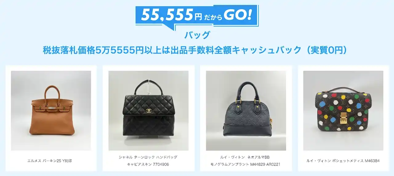 ・バッグ:税抜落札価格5万5555円以上は出品手数料全額キャッシュバック(実質0円) |