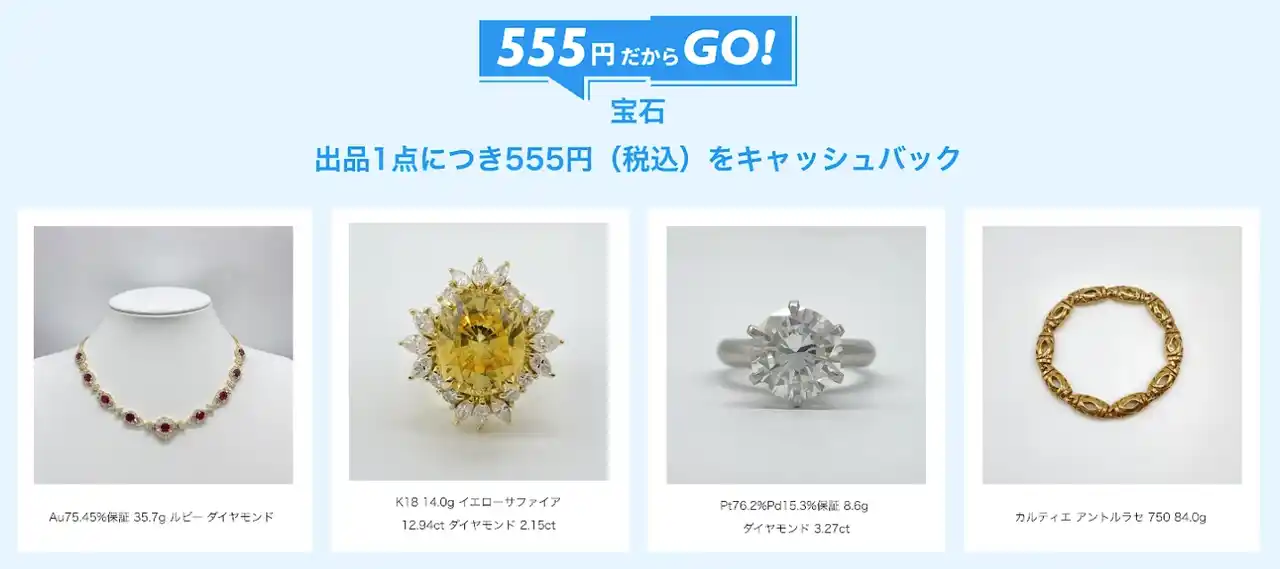 ・宝石:出品1点につき555円(税込)をキャッシュバック |