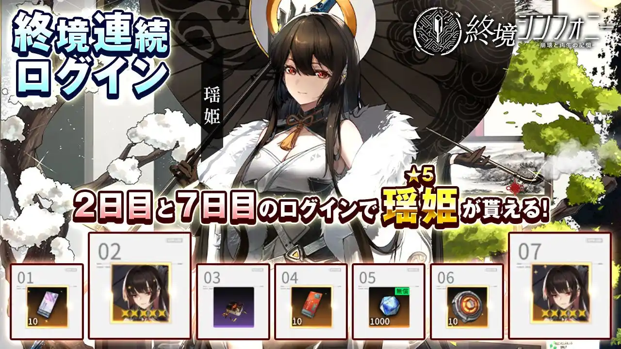 | 本イベントでは、プレイ開始より連続でログインした日数に応じて、豪華な報酬をお受け取りいただけるキャンペーンです。とくに、陣営:零進制の★5サポーター「瑶姫」は2日目と7日目に獲得可能で、序盤の編成を一気に強化できます。さらに、初回特典装備BOX1個(3日目)や7日継続特典装備BOX1個(12日目)には、序盤の戦力アップに直結する装備が含まれており、アタッカー/サポーター問わず実数値と効率を底上げできます。加えて、ローミングセレクト契約10枚(4・10・14日目)や暗晶1000個(5・9日目)など、ガチャ・育成リソースも段階的に獲得可能です。 | |||