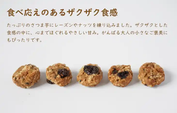 レーズンやナッツを練りこみ、日本酒づくりの過程で生まれた米麹発酵甘味料でやさしくまとめたクランチスナックで、自然の甘味とザクザク食感が楽しめます。 |