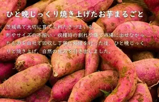 形やサイズの不揃い・収穫時の割れや傷で市場に出せなかったさつまいもを自社で丁寧に処理した後、ひと晩かけてじっくりと焼き上げ、自然の甘味を引き出しました。 |