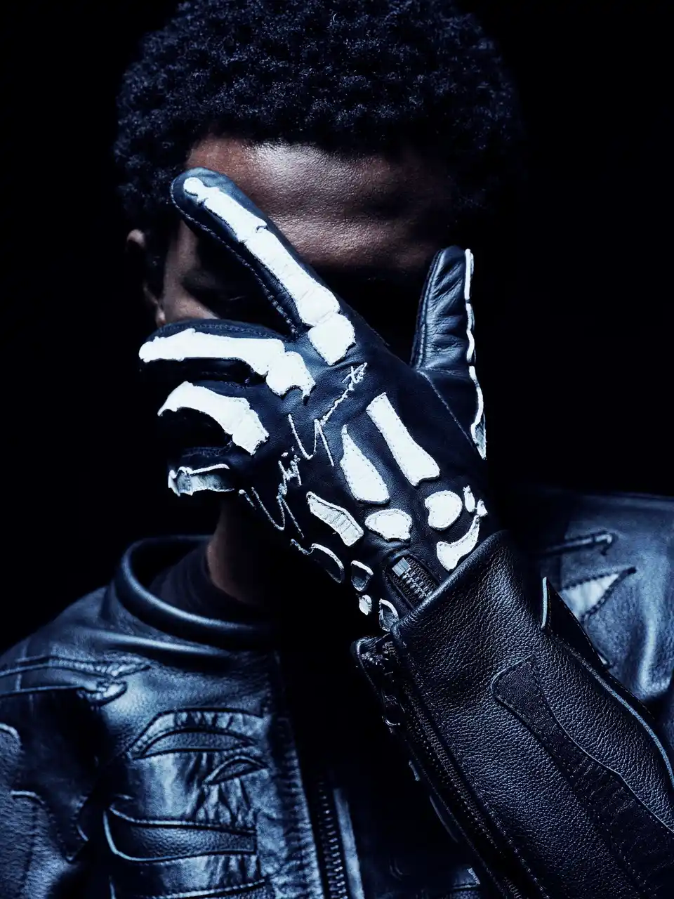 BONES FLAT-TRACK JACKET : Black ¥924,000(税込)/ XRAY GLOVE : Black ¥198,000(税込) |