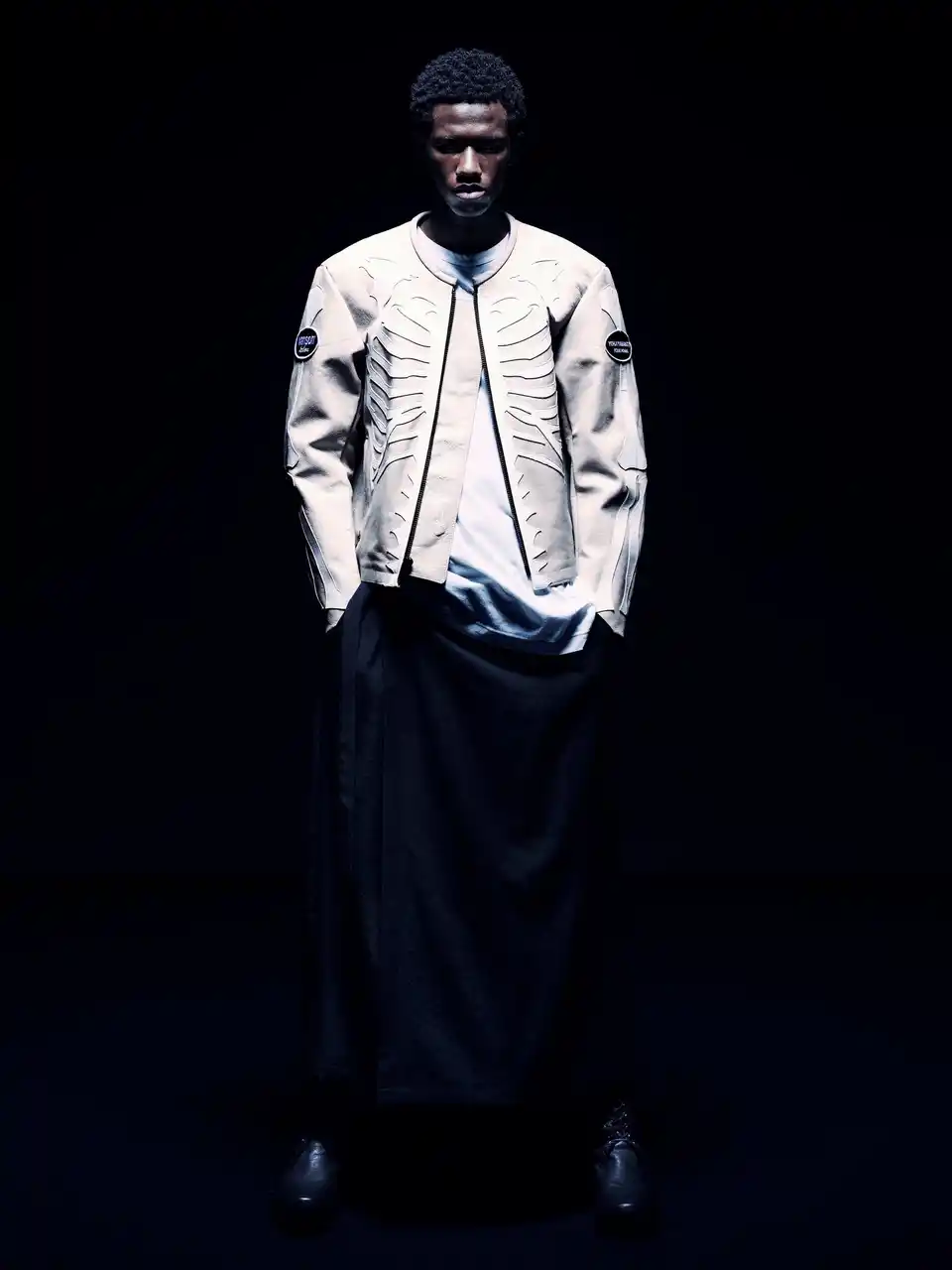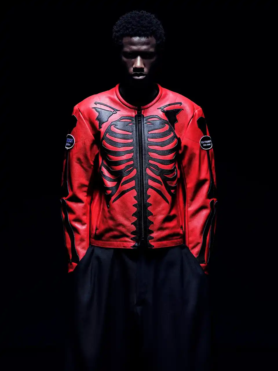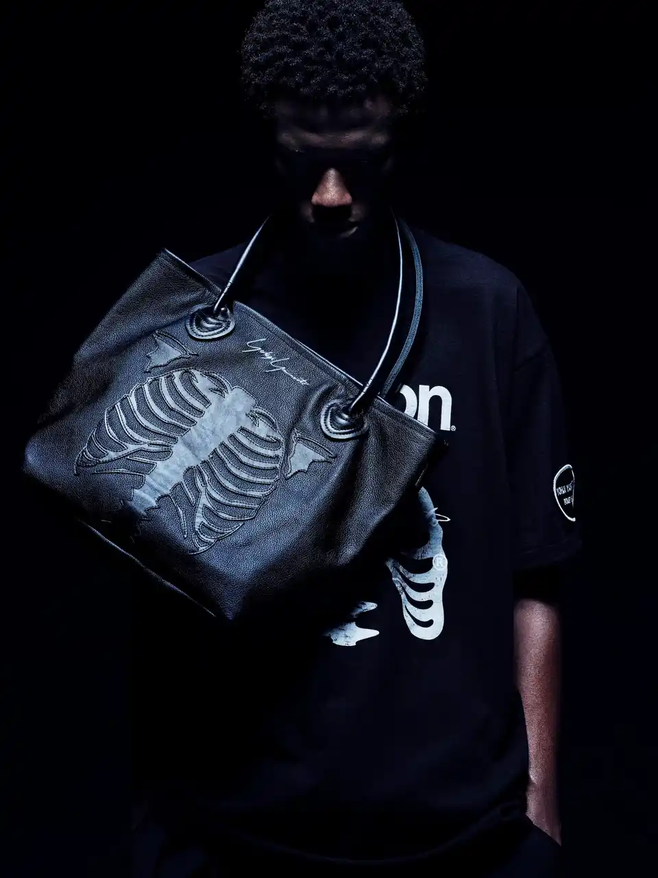 本コレクションでは、VANSONのクラシックなプロダクトをベースに、BONEデザインをYohji Yamamoto POUR HOMMEの視点から再構築したジャケット、バッグ、グローブを展開します。ジャケットはシングルライダースに立体的な骨モチーフのダブルレザーパネルを配置。カラーレスデザイン、フロントジップ、バックル、外ポケット、スリーブ肩位置のオーバルワッペンなどVANSON伝統の仕様を採用しています。BONE柄のトートバッグは、ハンドルの長さを調整し、フロント・バックパネルやレザーパッチの配置を変更した特別仕様。いずれのモデルにもBONEグラフィックとYohji Yamamotoのネームを施しています。ジャケットをご購入いただいた方には、限定ノベルティーとして、BONE TEE SHIRTをご用意しています。 |