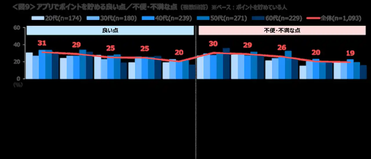 アプリでのポイ活は、「財布がかさばらず、管理が楽」な良い点と「レジ前でアプリの起動や表示に手間がかかる」の不便な点があがった。<図9> |