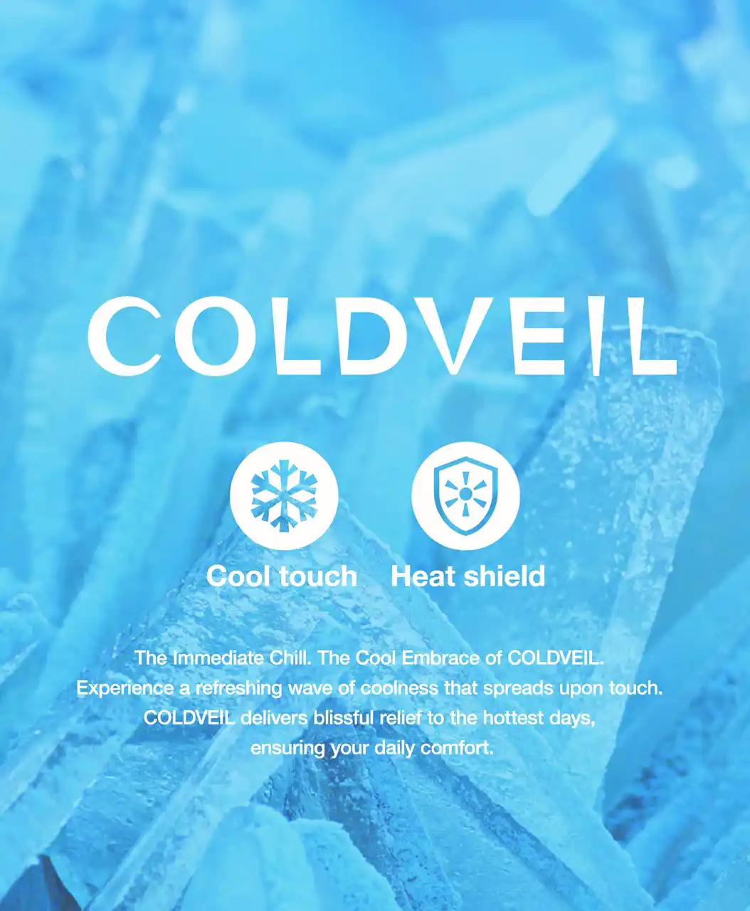 遮熱・速乾・冷感の3つの機能を持ったナイロン素材「COLDVEIL」。酸化チタンの練り込みによって、温度を吸収して生まれる冷感と遮熱性をもち、暑さを感じる環境で使用する様々な場面に活躍する素材です。 |
