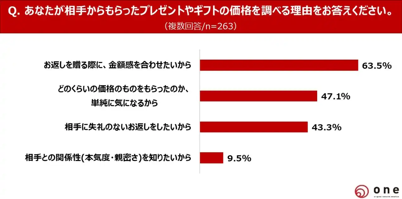 | Q8. あなたが相手からもらったプレゼント・ギフトの価格を調べる理由をお答えください。(複数回答/n=263) | ||||||||||||