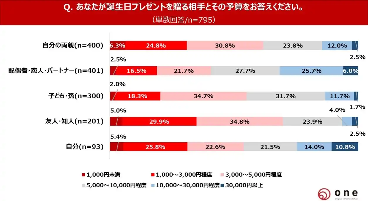 | Q3. あなたが【誕生日プレゼント】を贈る相手とその予算をお答えください。(単数回答/n=795) | ||||||||||||