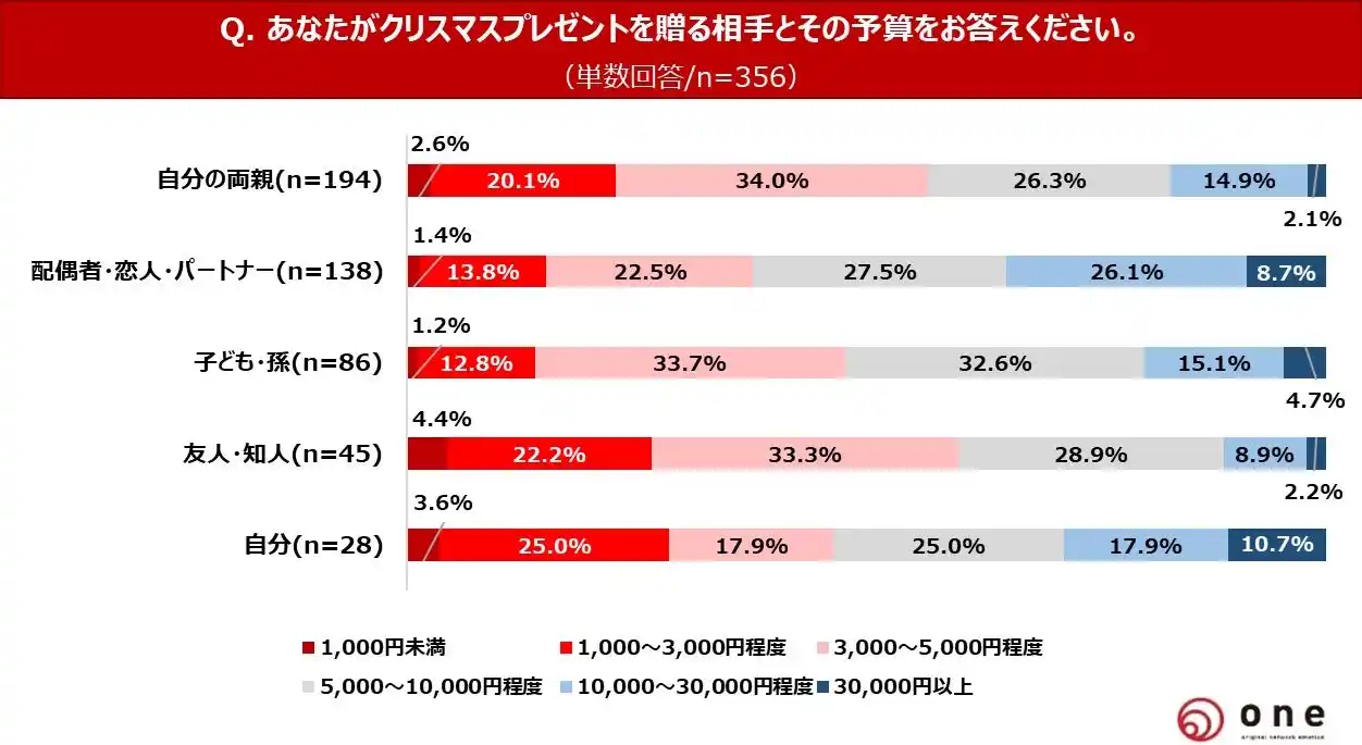 | Q4. あなたが【クリスマスプレゼント】を贈る相手とその予算をお答えください。(単数回答/n=356) | ||||||||||||