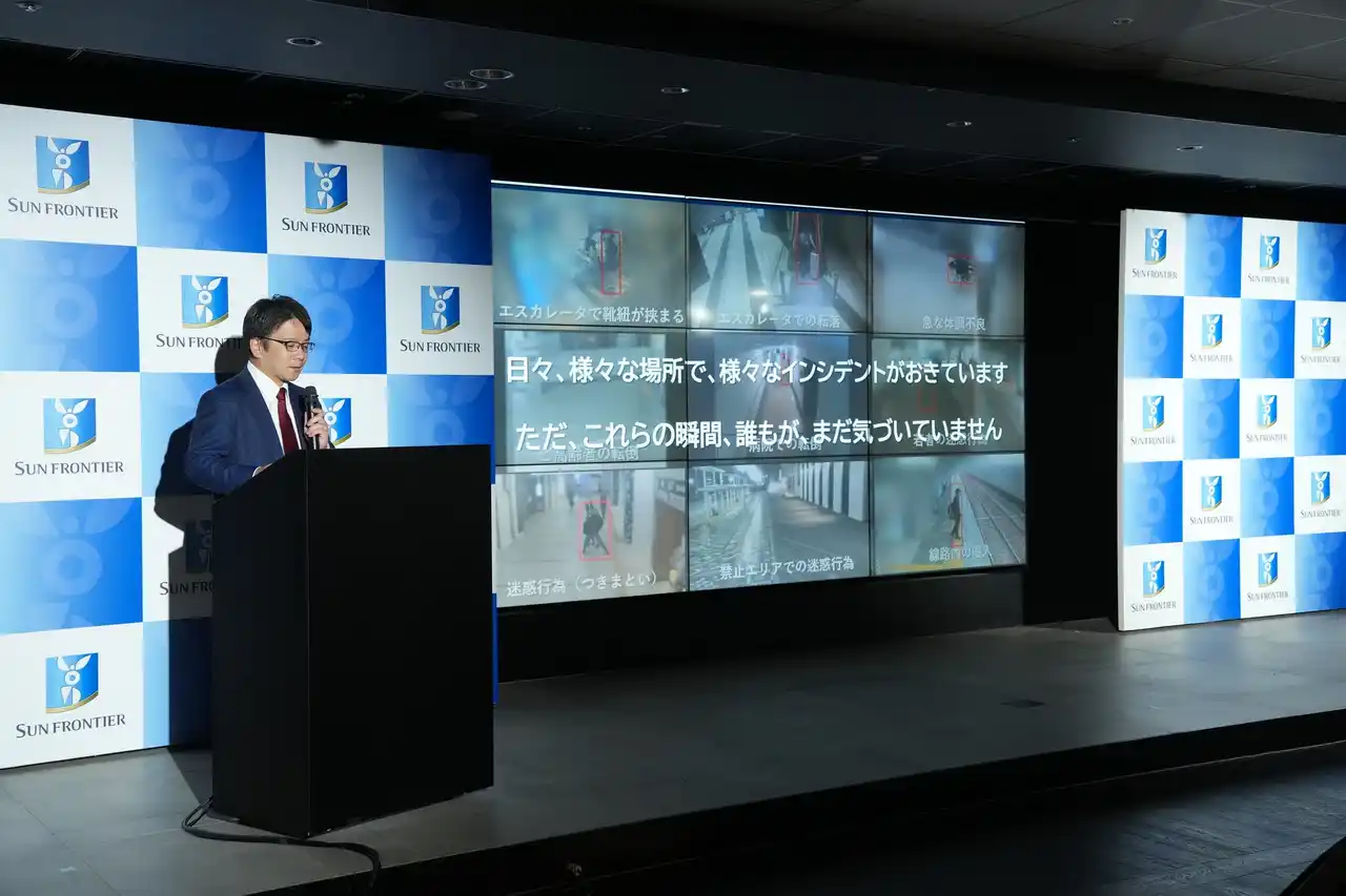 主力製品「AI Security asilla」は、防犯カメラ映像から人の姿勢を解析し、転倒や暴力行為、侵入などの異常を検知して即時に通報するAI警備システムです。映像の個人情報を扱わず姿勢データのみで判定する点が特徴で、リリースから約3年で約200カ所に導入され、日本国内ではトップシェアクラスのポジションを確立しています。行動認識分野で26件の特許を取得しており、世界で約2億6,000万台に達する防犯カメラ市場や、今後の人流解析・ヘルスケア・ロボット連携などへの展開を見据えながら、日本発の行動認識AIインフラとして世界中の街や施設の安心・安全を守ることを目指しています。 |