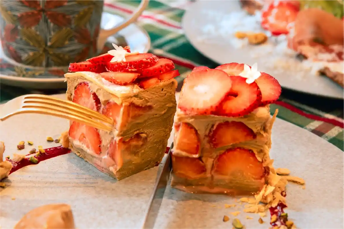 | 「TOOTH TOOTH」創業の地、神戸・元町トアウエストにある、クレープとガレットの専門店「CREPE & GALETTE TOOTH TOOTH」にて、毎年好評いただいている苺のガレットと、ミルクティーの豊かな香りが誘う冬限定の苺のミルクレープが登場! | |||