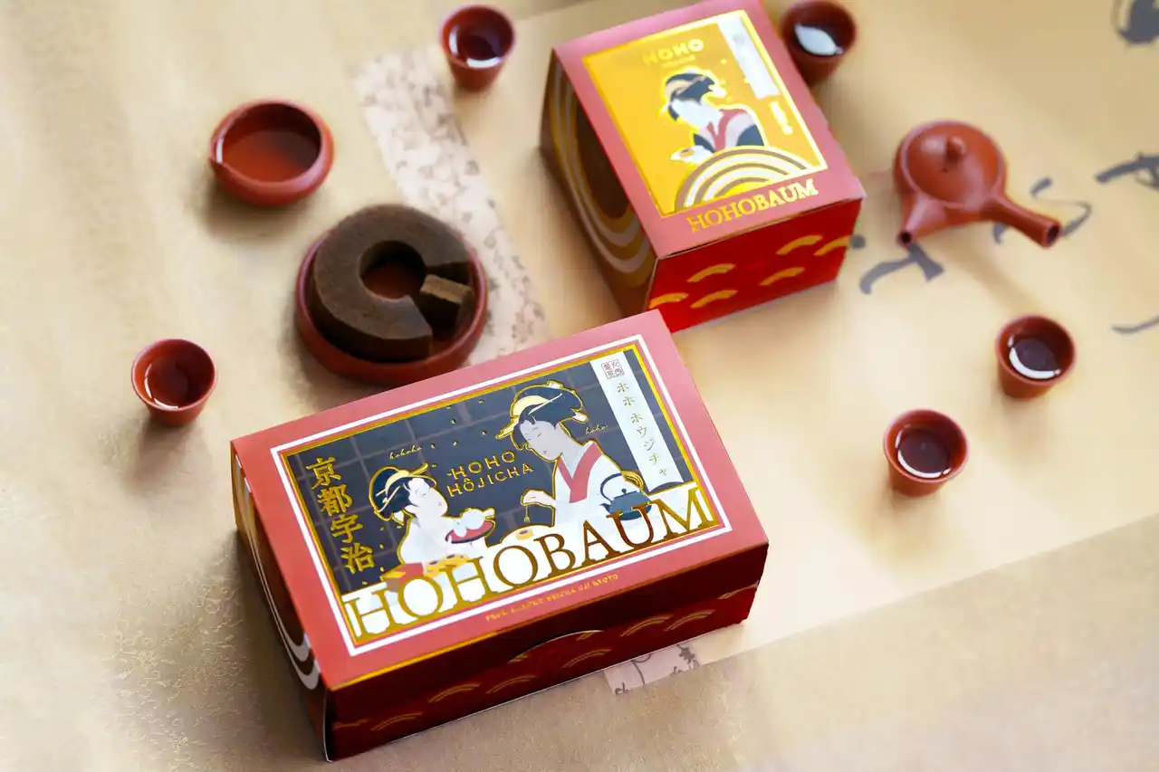 濃厚な焙じ茶の味と、しっとりとした食感が魅力のホホバウム。 |