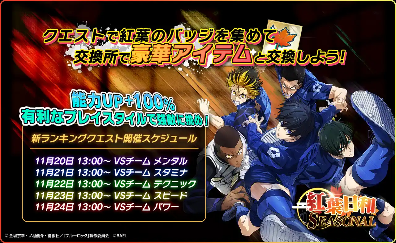 ・詳細はゲーム内のお知らせやブルーロック『BLAZE BATTLE』公式Xをご覧ください |