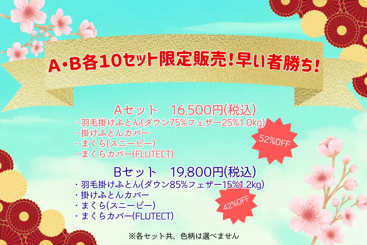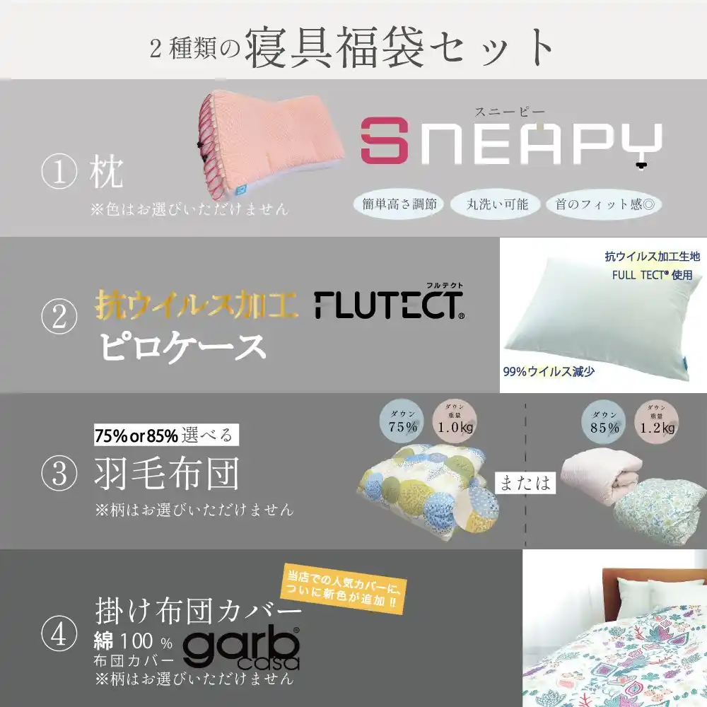 お得な福袋4点セットは2種類の”羽毛掛けふとん”から選択可能 |