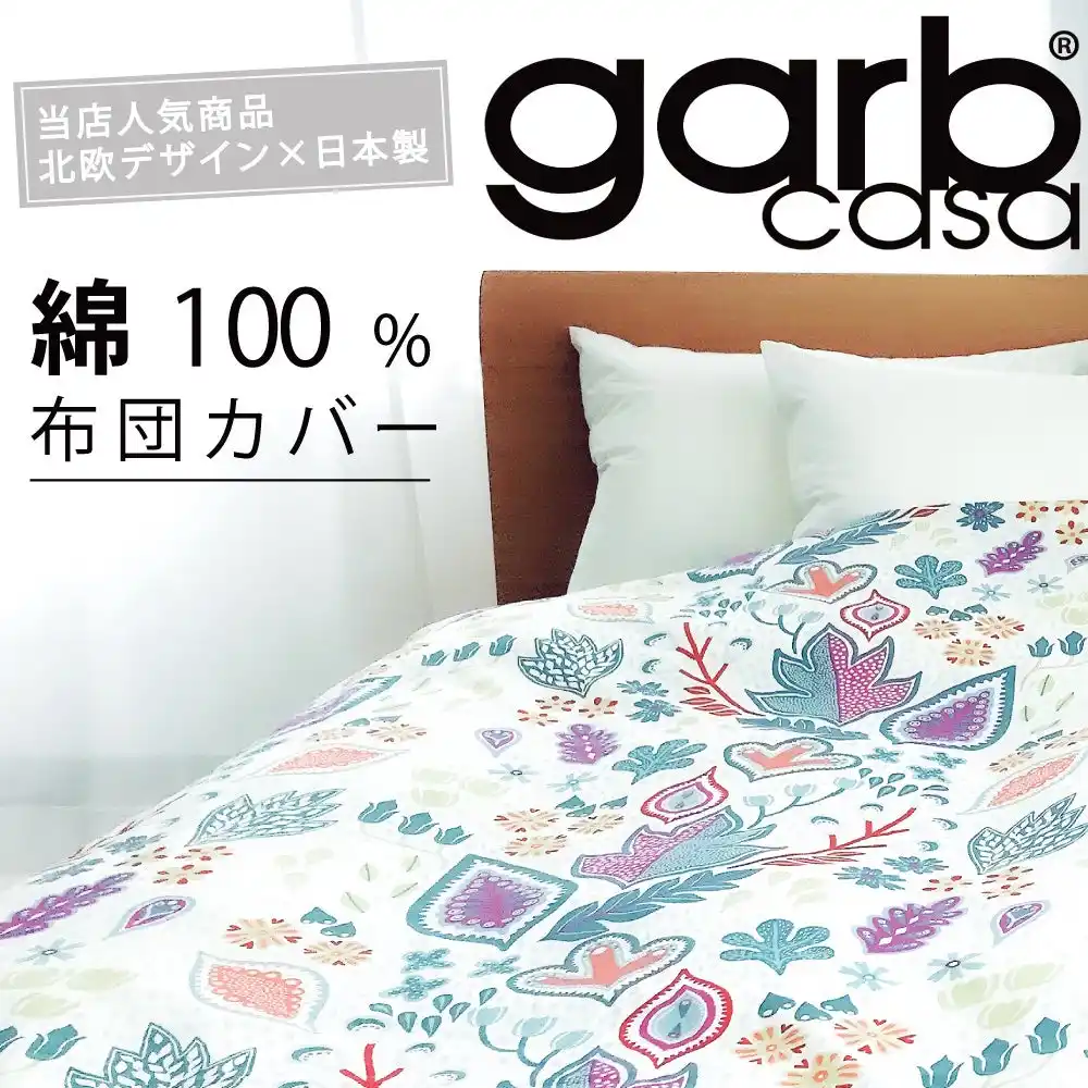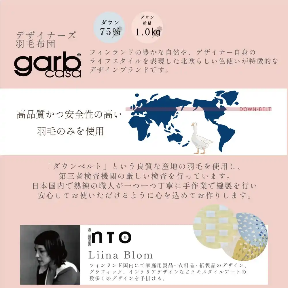 羽毛掛けふとんでもご紹介しました、garb casaデザインのふとんカバーが1枚付きます。 |