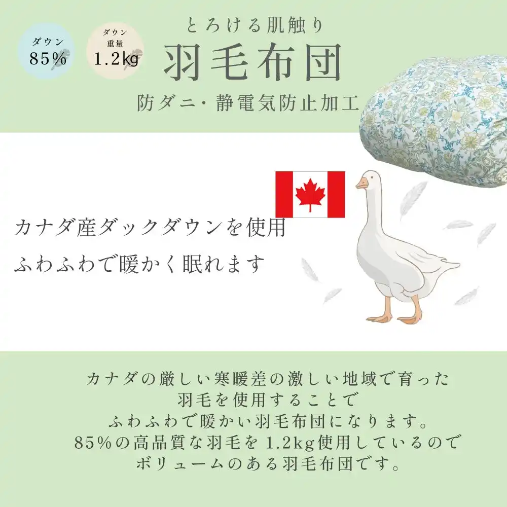 フィンランドやスウェーデンといった北欧テキスタイルデザインを採用した羽毛掛けふとんで心にも彩を灯しませんか? |
