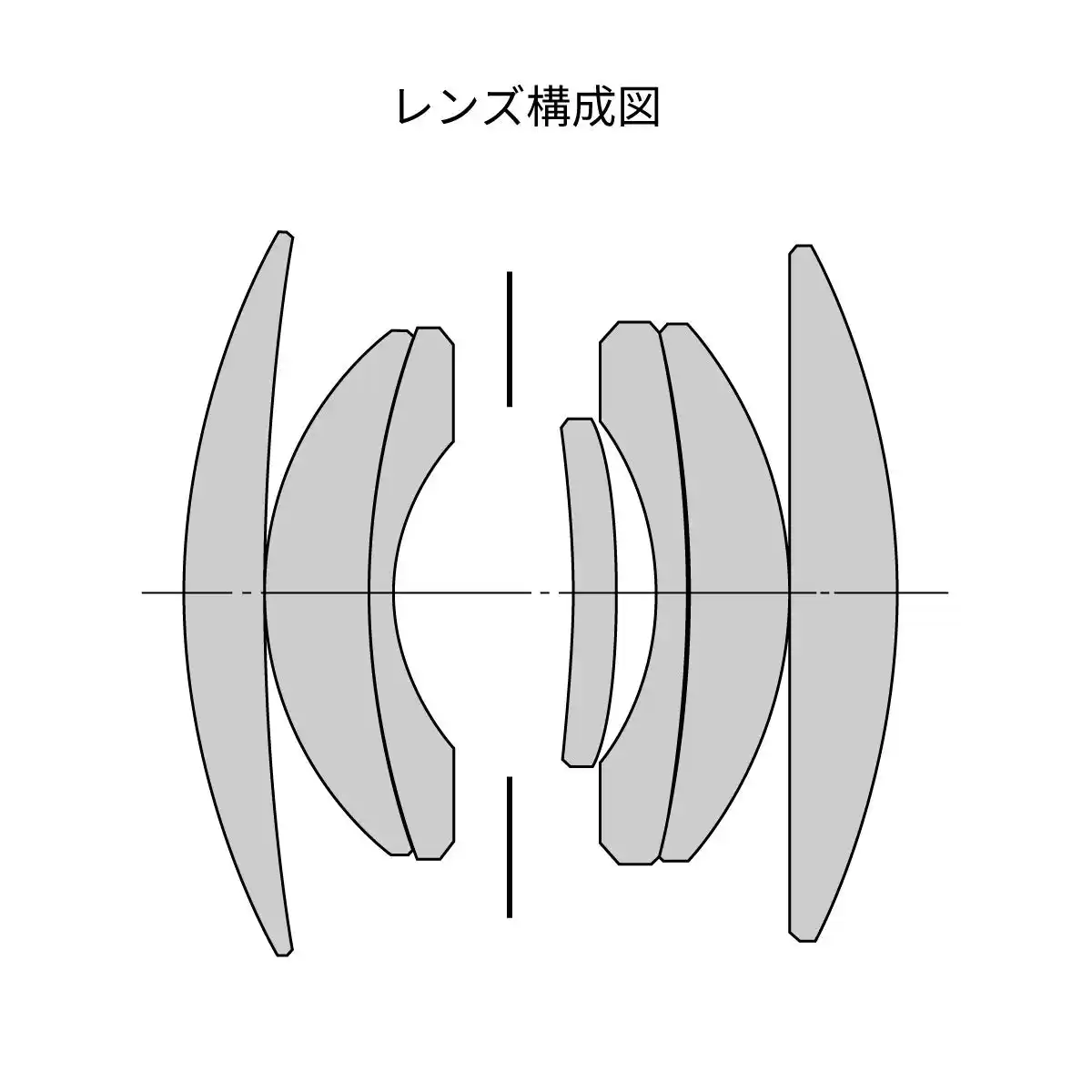 ・レンズ構成:5群7枚(ランタニウムガラス4枚、高屈折率レンズ1枚含む) |