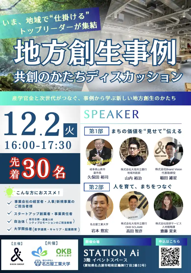 12/2(火)に名古屋市STATION Aiで山県市副市長登壇イベント開催が決定! 「地方創生事例共創のかたちディスカッション」