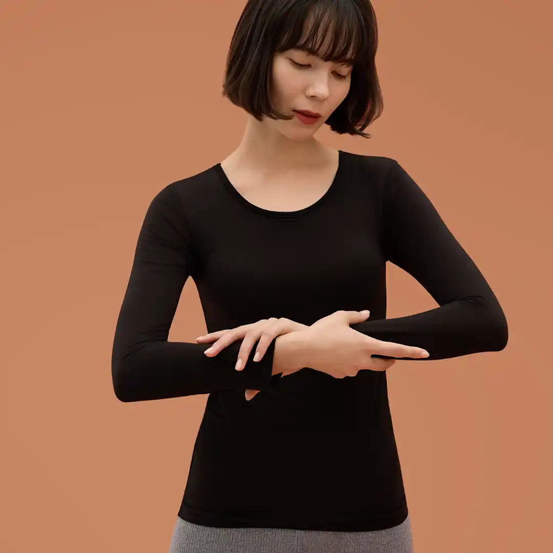 身体から発生する汗や湿気を吸収し、+3.4℃(*2) の吸湿発熱効果で熱に変換。着た瞬間からじんわりとあたたかく包み込みます。 |