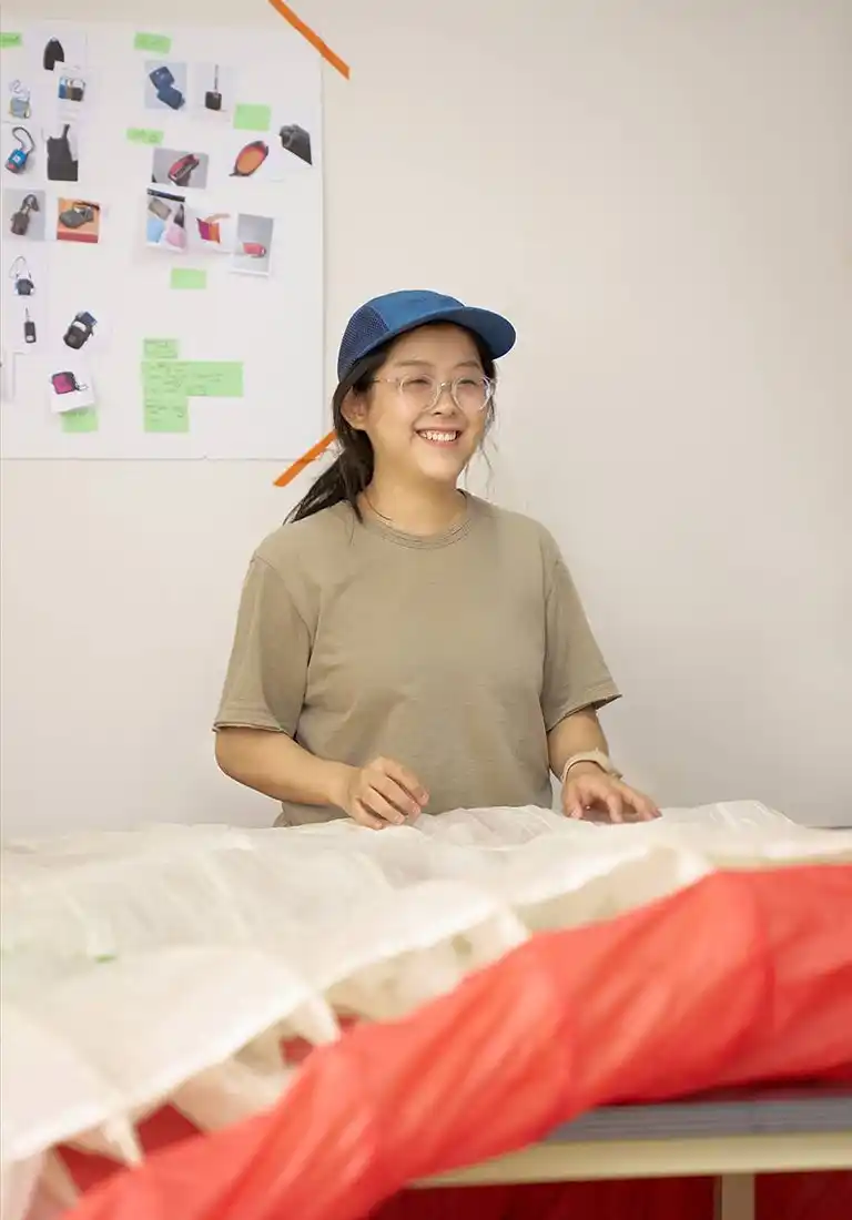 ファッションブランドでの制作経験から、“大量生産・大量消費”に疑問を持っていたOverLab代表のパク・ジョンシル氏。安全上の理由で短期間で廃棄されてしまうパラグライダーに出会い、アップサイクルブランド「OverLab」を設立しました。