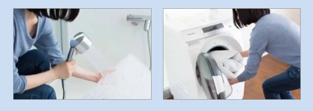 エアファイバー(R)は90%以上が空気でできています。通気性が抜群で夏は蒸れずに涼しく、冬は空気の層が暖かさを保つことができます。また、カバーもエアファイバー(R)も全て水洗いできるので、常にハイジーン(衛生・清潔)な環境を実現します。 |