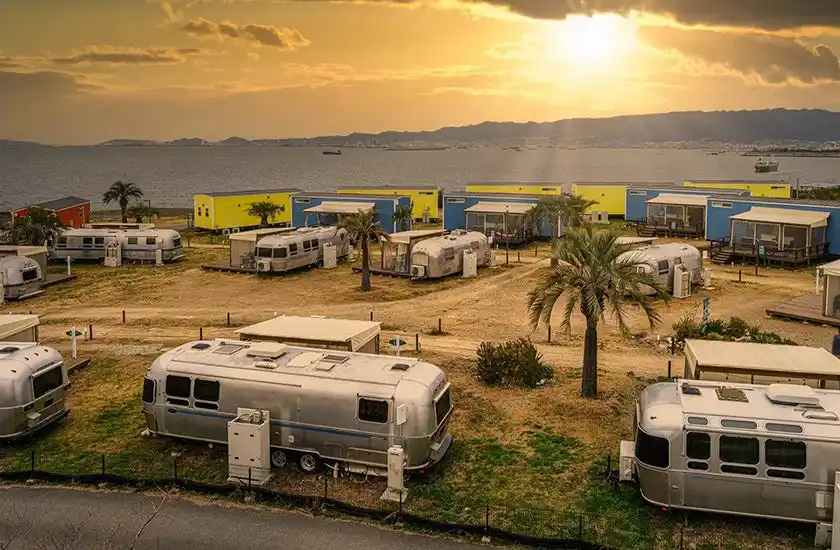 | パームガーデン舞洲(大阪府大阪市):大阪湾を望む絶好のロケーションで、マイアミ・テイストのトレーラーハウスやエアストリームに宿泊できるグランピング施設。 | |||||||||||||||||