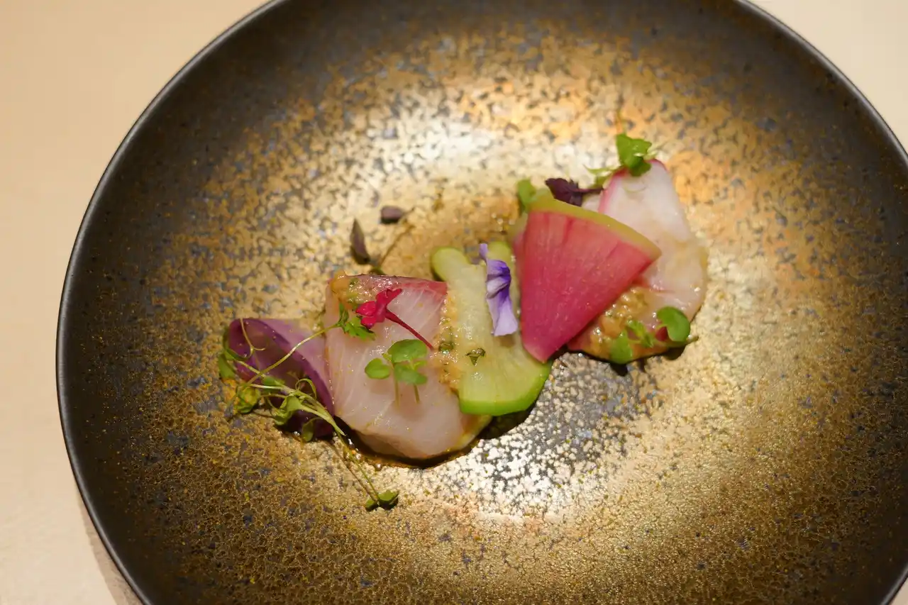 冷前菜:高知県産ブリ / 蕪 / 大根 / 柑橘のソース |