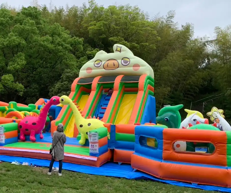 とんで!はねて!楽しもう!恐竜と一緒に遊べる15×20m級の超大型遊具のコース内には3台の巨大すべり台やトランポリンなど楽しい要素が盛りだくさん!お子様に人気のアトラクションです。親子で一緒に楽しめます。 |