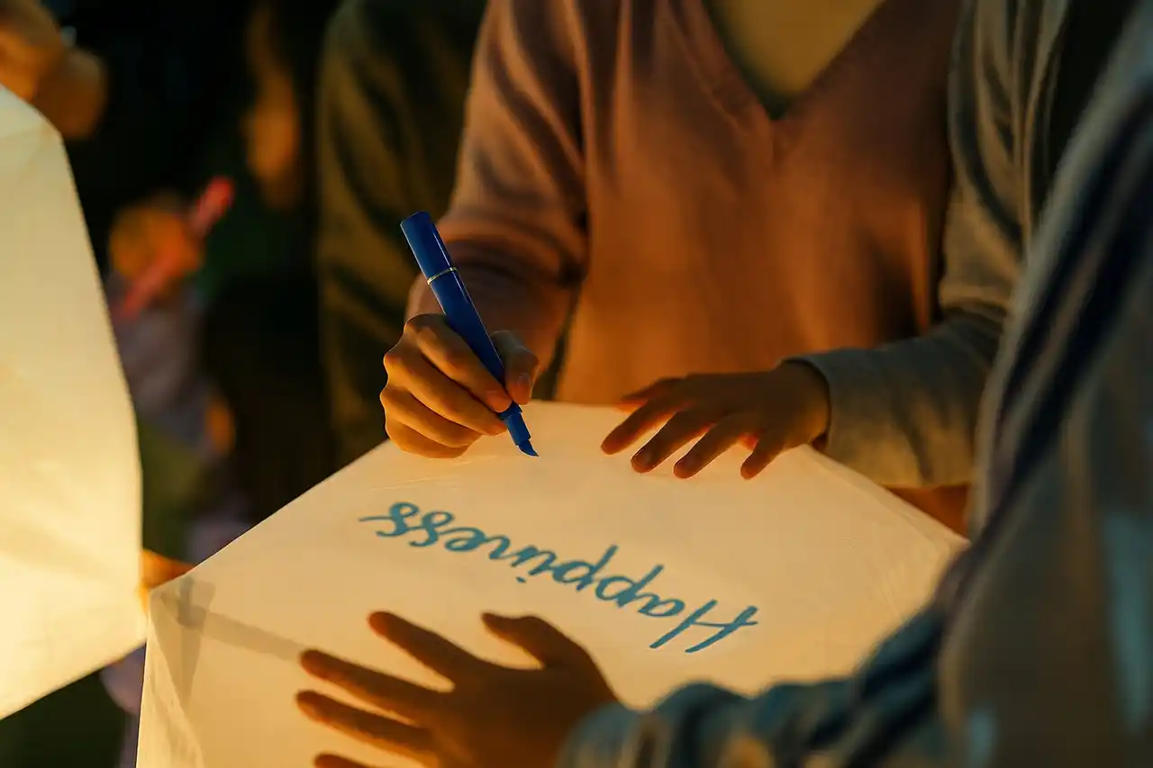 言葉にできず胸にしまっていた大切な人への感謝の気持ちをランタンに乗せてクリスマス間近の夜空に打ち上げましょう。大切な人との忘れられない素敵な思い出つくりになるはずです。会場にはペンをご用意していますが、ご自身で油性ペンをご持参いただけると混雑を避けてご記入いただけます。 |