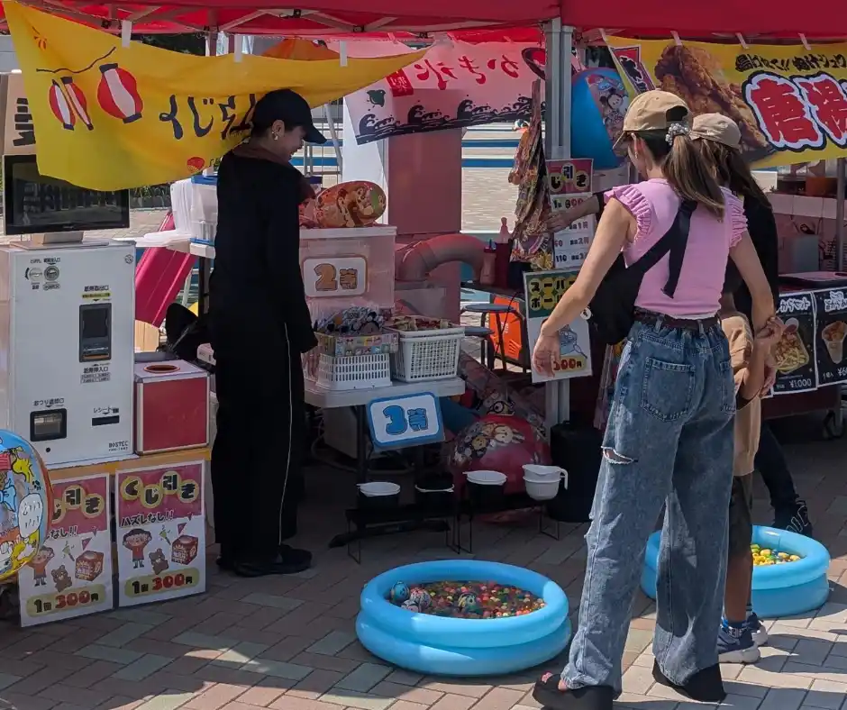スーパーボールすくい、くじ引きなど、親子で楽しめる縁日でお祭り気分を味わえます。キラキラ光るスーパーボールが水にぷかぷか浮かんでいるだけで、まるで宝石の池みたい!子どもも大人も、ついつい夢中になっちゃいます。「何が当たるか…。」その緊張感と期待感が魅力のくじ引きで豪華景品をGETしてください! |