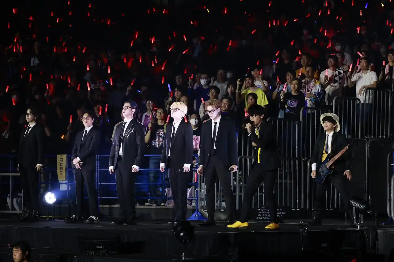 続けて、MADKID×OxTがTVアニメ『チェンソーマン』の「KICK BACK/米津玄師」を披露。“デビルハンター“のようにスーツ姿に身をまとった面々に会場は沸きあがった。 |