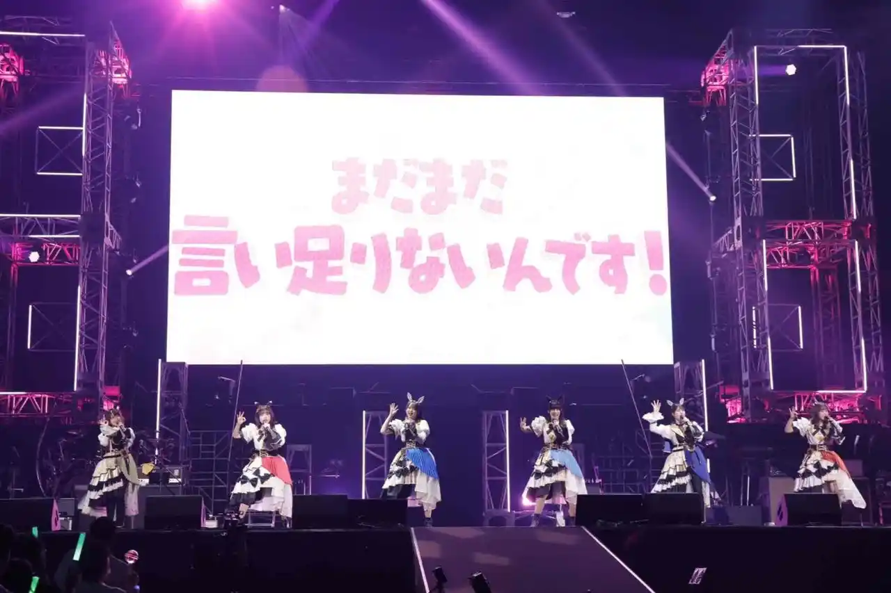 最後のコラボコーナーでは、天狼群×Tom-H@ck from OxT, MYTH & ROIDがTVアニメ『けいおん!!』の「GO! GO! MANIAC/放課後ティータイム」を披露。続いてはウマ娘 プリティーダービー×蒼井翔太が『ウマ娘 プリティーダービー』の「うまぴょい伝説」を披露。会場の待ってました!と言わんばかりの声援が沸きあがった。 |