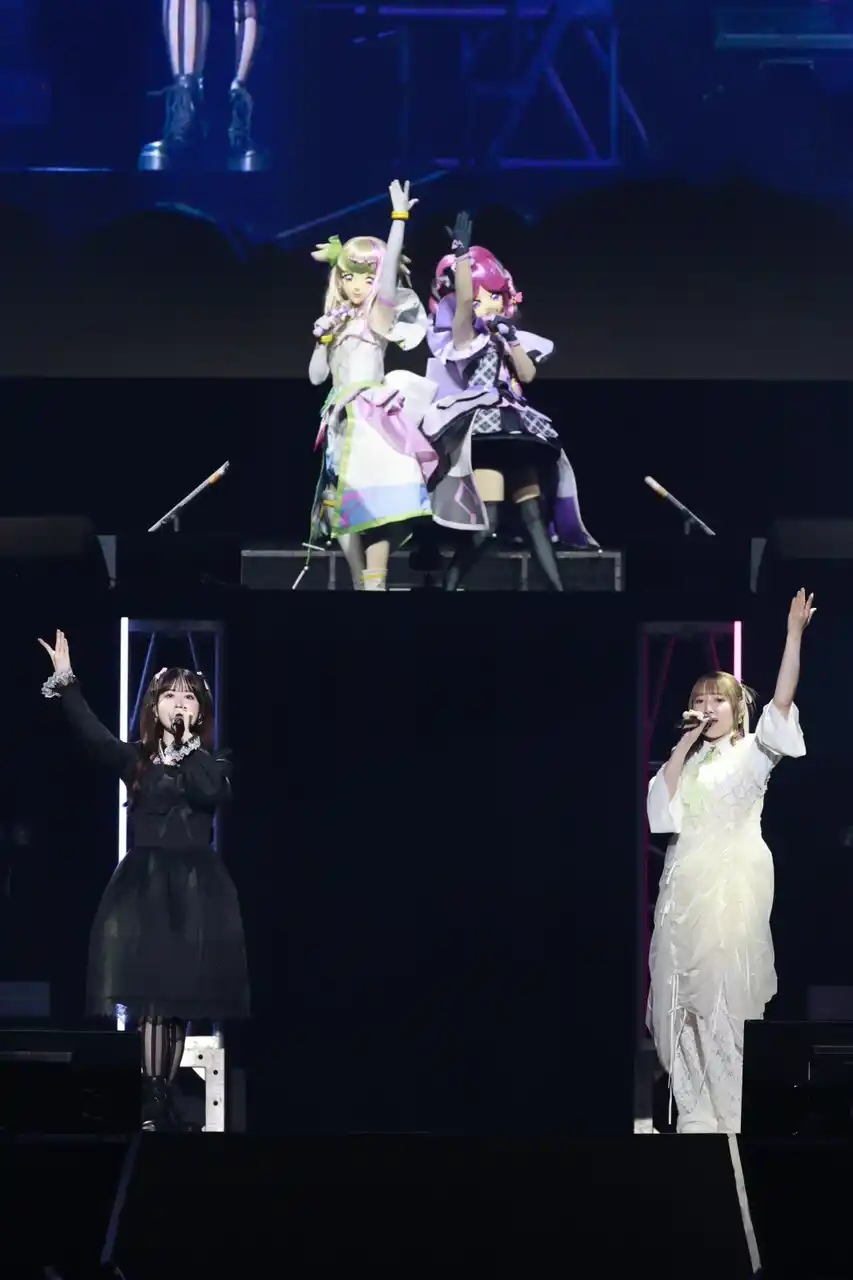 続いてはフランシュシュが「徒花ネクロマンシー」(TVアニメ『ゾンビランドサガ』)、「REVENGE」(TVアニメ『ゾンビランドサガ リベンジ』)、「またたく宇宙(ソラ)に憧れて」(劇場版『ゾンビランドサガ ゆめぎんがパラダイス』)の3曲をお届け。4年ぶりのライブに会場は待望の時が来たと言わんばかりの声援を送った。 |