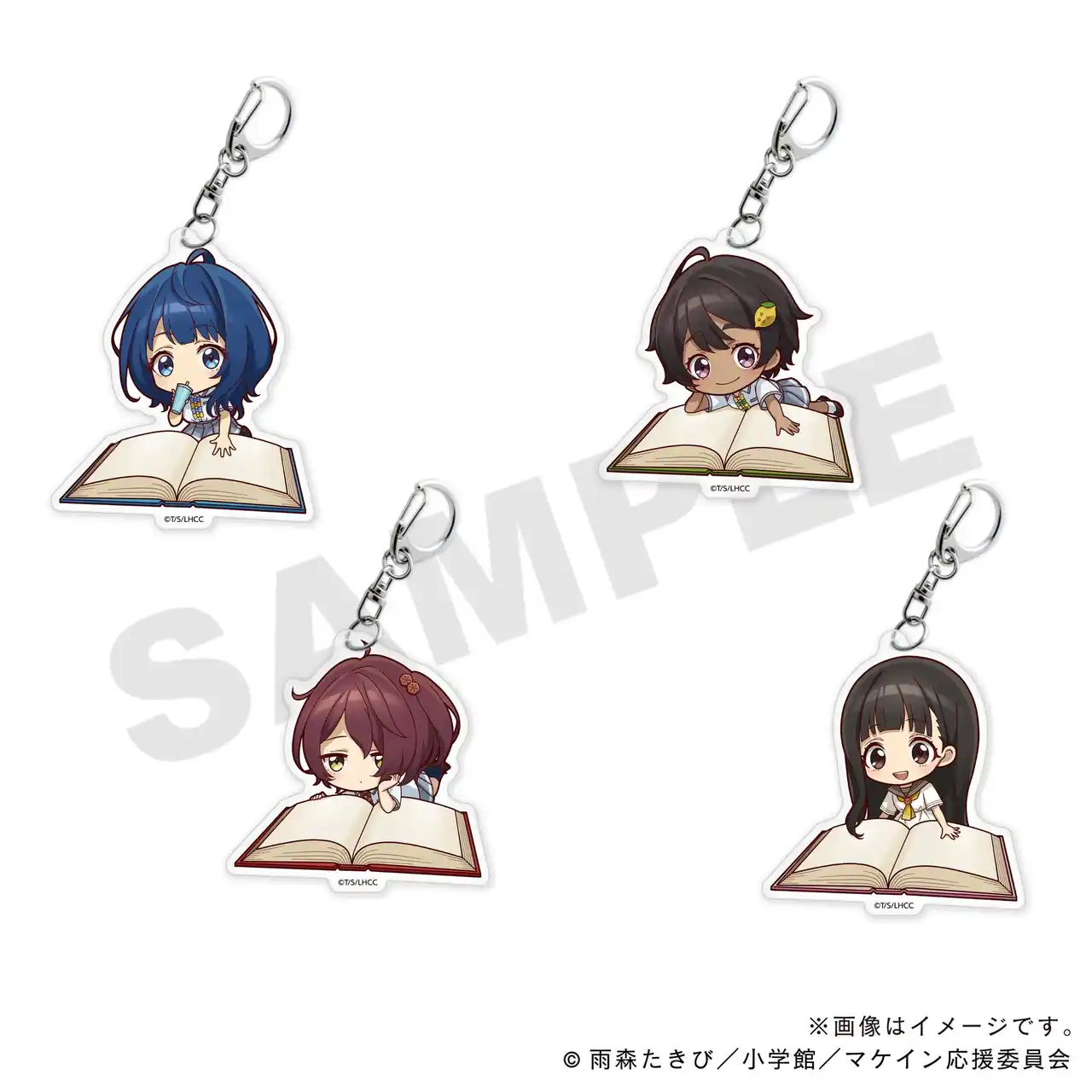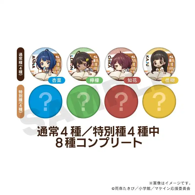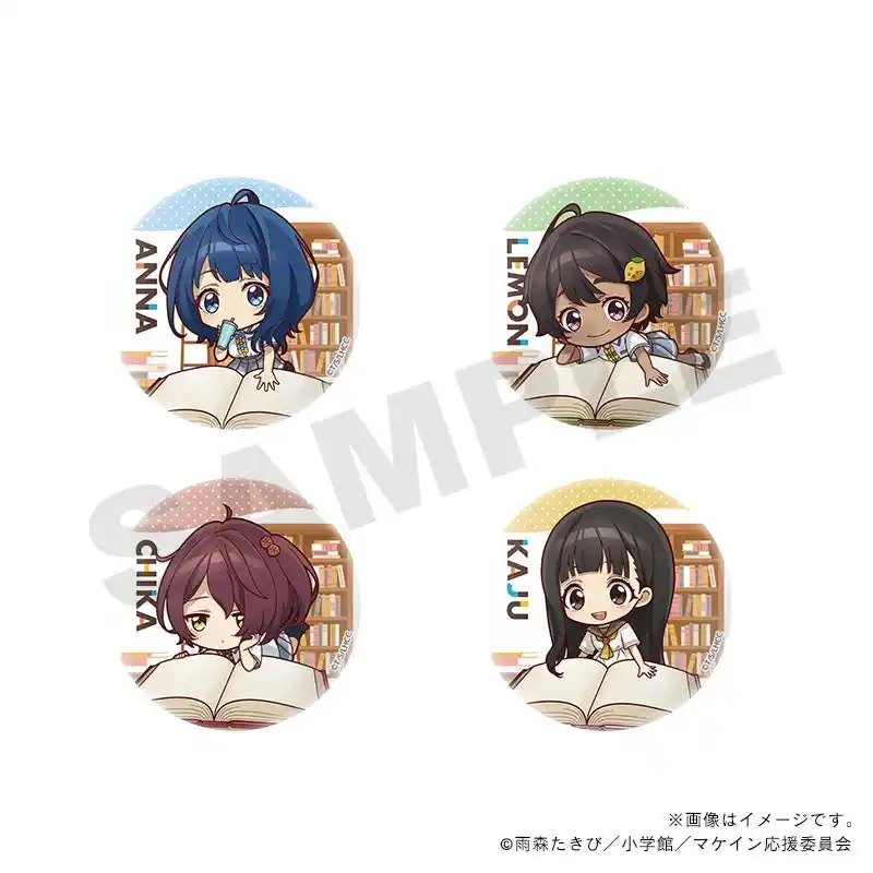 限定グッズでは、負けヒロインの八奈見杏菜、焼塩檸檬、小鞠知花と温水佳樹を加えた4キャラクターが、オリジナルイラスト「読書ミニキャラver.」として登場。書店ならではの特別なイラストで仕上がったアクリルグッズや缶バッジをお楽しみください。 |
