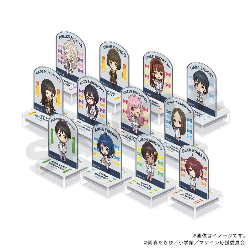 第1弾、第2弾でご好評を頂いていた夏制服ミニキャライラストに続き、冬制服に衣替えしたミニキャライラストの八奈見杏菜たちが新グッズにラインナップします。夏制服で登場した9キャラクターに加え、権藤アサミ、放虎原ひばり、馬剃天愛星も新たに仲間入りし、より多くのキャラクターの魅力をお楽しみいただけるよう、大幅にパワーアップしました。ラインナップは定番のアクリル系雑貨に加え、特別種がランダムに入った缶バッジBOXが登場。開けるまでどのキャラクターが出るかわからない、コレクションのワクワク感もお楽しみいただけます。 |