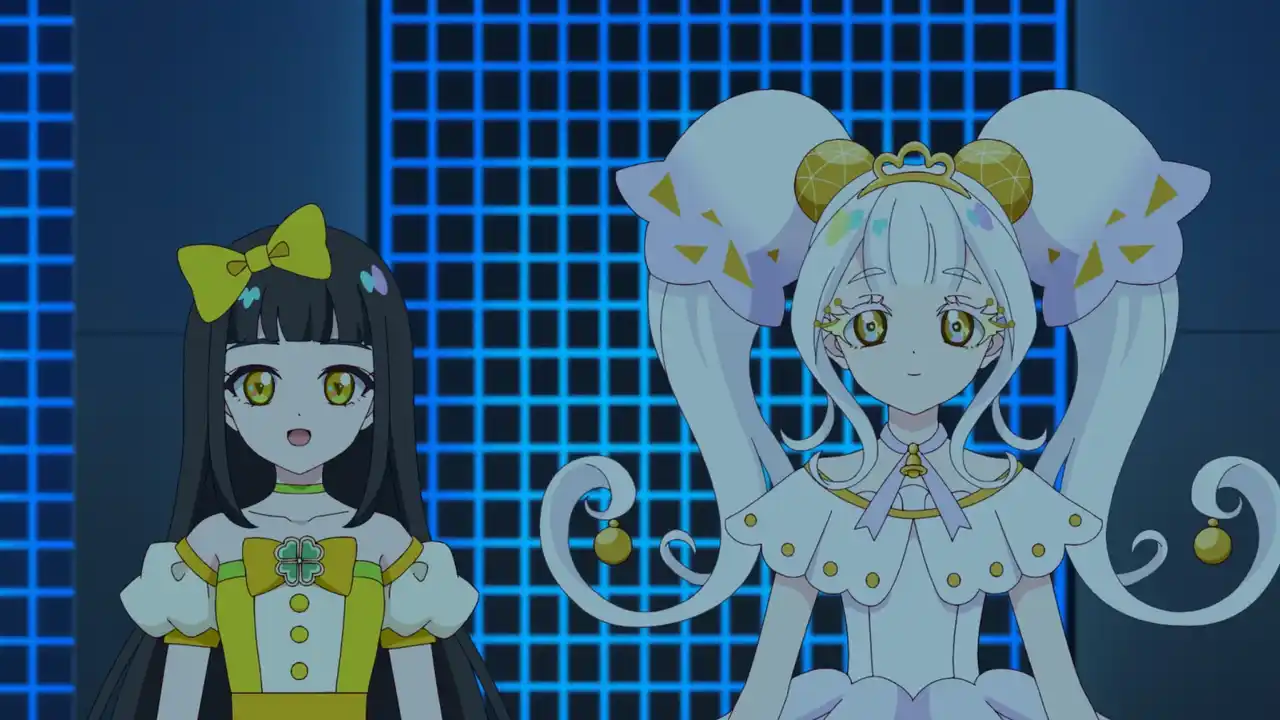 | 第4回アイプリコンテストのお披露目ライブの日。パラダイス学園のみんなに応援され、ひまりもみつきもやる気じゅうぶん 最初のライブは、ルミナスフローラから。リング姫とつむぎは、誰もが見惚れるような圧巻のライブを披露する。そのすごさを目の当たりにしたみつきとひまりは、ある決意をする。二人はなんと、お披露目ライブを辞退すると言い出したのだ。みつきとひまりの思いとは……? | |||||||||