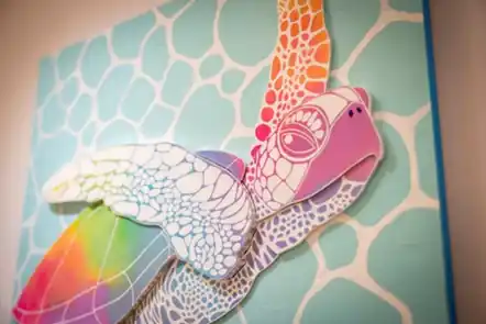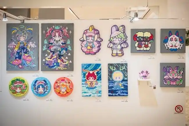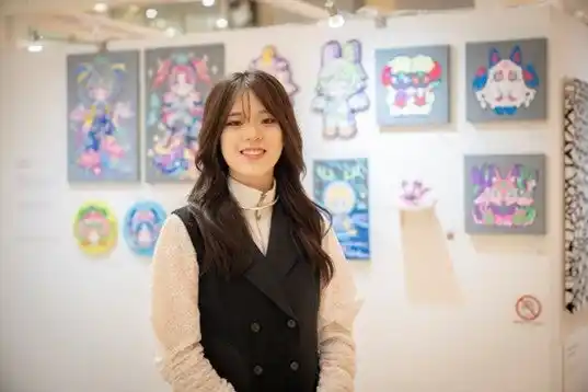 今回の出展で「いつか百貨店で展示したい」という夢が叶いました。私自身もよく訪れるうめだ阪急で作品を発表できて、本当に感慨深いです。私の作品は、ネガティブな感情をテーマにしながらも、見る人が明るい気持ちになれるようなポップな色彩を追求しており、今回は女の子やモンスターをモチーフに、平面作品と立体作品を展示しました。立体作品には3Dプリンターを活用。技術的な調整が難しく、何度も失敗しながら試行錯誤して制作したものです。絵はシンプルな線と色で構成していますが、外壁のようなテクスチャーの下地を塗り、デジタル表現とは異なる質感や存在感を表現するなど、一点もの作品としての付加価値を高める工夫も取り入れました。 |